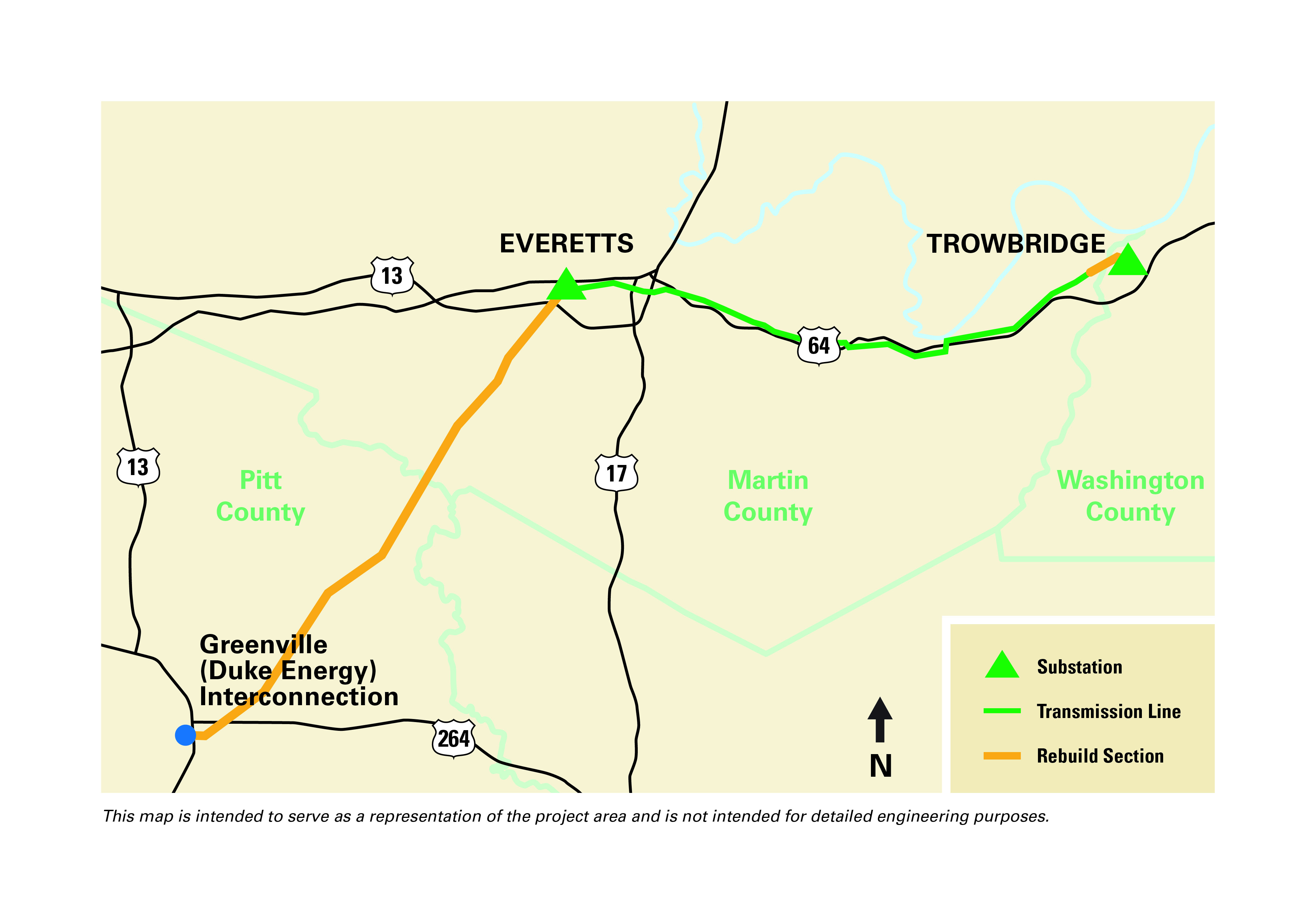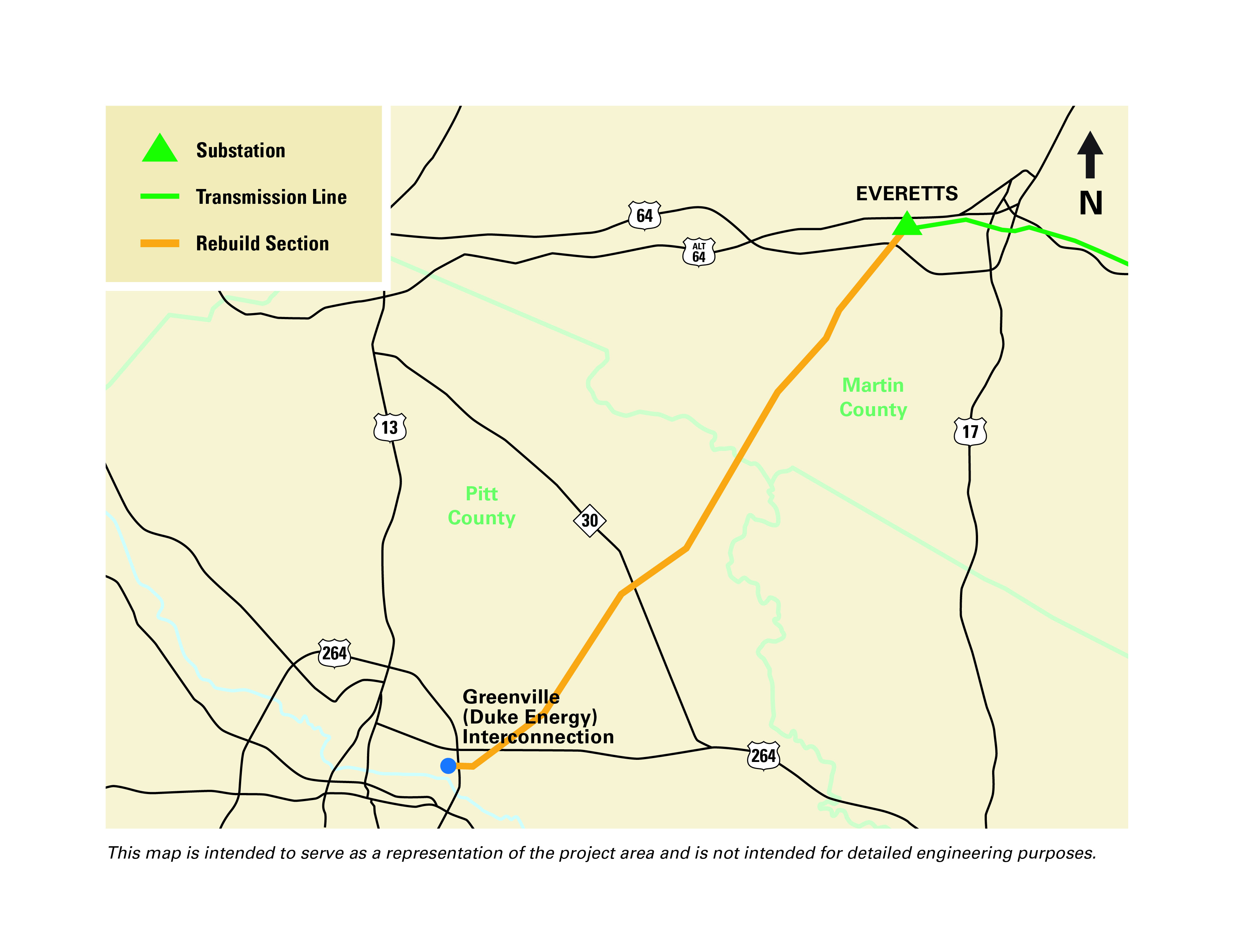 3. Rebuild 20 miles of Line 218 in Martin and Pitt counties from Everetts Substation to our interconnection with Duke Energy in Greenville.